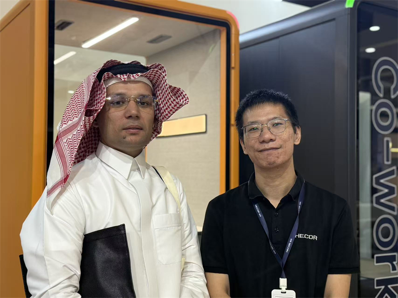 本次展會HECOR繼續(xù)以創(chuàng)新、可持續(xù)和高品質(zhì)的解決方案,破局未來辦公變革之路。在商業(yè)氛圍蓬勃上升的沙特現(xiàn)場迅速引起客戶高度關注,前來體驗咨詢的人此起彼伏。